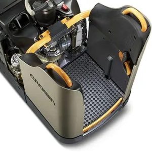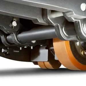 Hệ thống treo tiên tiến giúp giảm đáng kể chấn động cho khung gầm, sàn nâng và các thành phần của xe. Hệ thống treo bộ truyền động kín không cần điều chỉnh độ mòn lốp dẫn động. Xe nâng có hệ thống lái điện bao gồm hệ thống Kiểm soát lực kéo chủ động với hệ thống thủy lực cải tiến giúp điều chỉnh áp suất lên lốp kéo tùy theo điều kiện tải trọng để đạt tốc độ di chuyển nhanh hơn và lực kéo tốt hơn trên dốc.